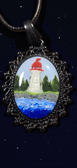 This beautiful necklace was hand sculpted out of polymer clay and domed with resin. The lighthouse sits right across the Narrows that run between Lubec, ME USA and Campobello Island, NB. Inspired by the perfect view of this lighthouse right across the border at my shop in Lubec!