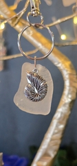 This keychain is made with genuine sea glass from the beaches of Lubec Maine and features a silver charm!