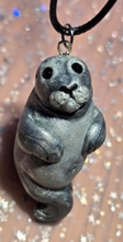 This adorable seal necklace is a charming and whimsical piece of jewelry that will surely make a statement. Hand-sculpted from polymer clay, the seal pendant is intricately crafted with attention to detail, capturing the cute and playful nature of these beloved animals. The seal's features are delicately sculpted, giving it a lifelike appearance that is both endearing and unique. The pendant hangs from an 18-inch cord, providing a comfortable and versatile length that can be easily adjusted to suit your style. The cord complements the seal pendant beautifully, allowing it to take center stage and shine as the focal point of your outfit. This seal necklace is a perfect accessory for animal lovers, beach enthusiasts, or anyone who appreciates handmade and unique jewelry. Whether you wear it as a daily reminder of your love for seals or as a special piece for a beach-inspired outfit, this necklace is sure to spark joy and conversation wherever you go. Add a touch of whimsy and charm to your look with this hand-sculpted seal necklace that showcases the beauty of polymer clay artistry and celebrates the playful spirit of these adorable creatures.