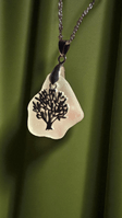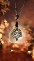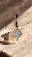 This beautiful piece of sea glass was found on the beaches of Lubec, ME. This piece features a sterling silver tree charm and is on an 18 inch sterling silver chain.